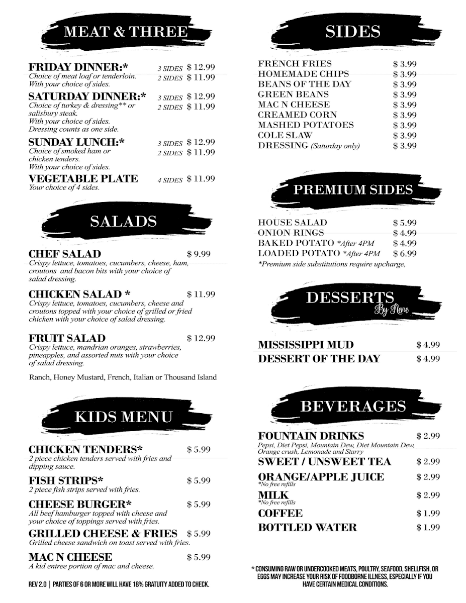 When it comes to entrées, The Quarry At Weir Mountain Menu truly shines. Their Fish Dinner, served grilled or blackened, stands out with its delicate seasoning, while the buttery shrimp adds a coastal touch that pairs beautifully with Southern sides. The ½ Lb Quarry Burger and BBQ Shredded Pork are favorites among locals - juicy, smoky, and perfectly seasoned - while the Crispy Chicken Sandwich brings that classic crunch and tenderness you hope for in a Southern kitchen. The Dijon Chicken and Marry Me Chicken are highlights for those craving something creamy and rich, offering flavors that balance indulgence with homestyle simplicity. For guests who appreciate tradition, the Meat & Three section feels like a trip back in time - the Meatloaf, Salisbury Steak, Smoked Ham, and Pork Tenderloin come with your choice of sides, including down-home favorites like Pinto Beans, Mac N Cheese, and Green Beans.